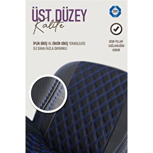 Volkswagen Eos Uyumlu Lüx Yarı Deri Oto Koltuk Kılıfı Ön Arka Takım Petra Si̇yah Mavi̇ Siyah-Mavi
