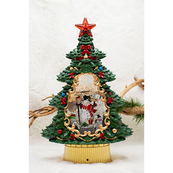 Waldern Dekoratif Çam Ağacı Kar Küresi Kardan Adam Yılbaşı Süsü 37cm
