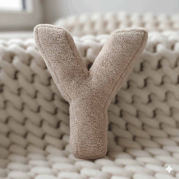 Woodesk Litera, Y Harfi, Yastık, Kırlent, Elyaf Dolgulu, Welsoft Kumaş, 40 Cm