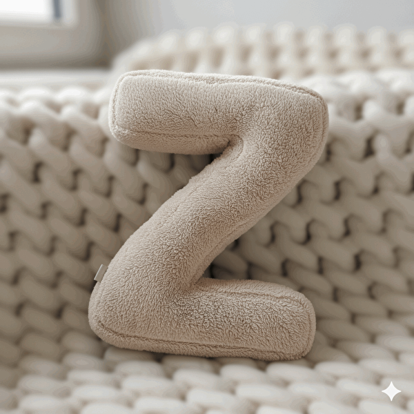 Woodesk Litera, Z Harfi, Yastık, Kırlent, Elyaf Dolgulu, Welsoft Kumaş, 40 Cm