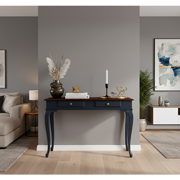 Wooding Mobilya 100 Cm Masif Lükens Lacivert Ceviz Çalışma Masası