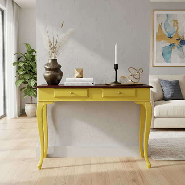 En: 110 Cm, Derinlik: 40 Cm, Yükseklik: 80 Cm’dir. Poliüretan lake boya ve verniklidir. Hem geniş hem de kompakt alanlara rahatça yerleştirilebilir. Ürünün ayakları tamamen ağaç olup, üst tablası mdf üzeri masif(ağaç) kaplamadır. Evinizde ya da ofisinizde şık bir görünüm sağlar. Masif yapısıyla dayanıklılığı artırılmış bu ürün, 1. Sınıf malzemelerden üretilerek uzun süreli kullanım için idealdir. Çekmeceleri sayesinde ekstra depolama alanı sunarak düzenli bir ortam yaratmanıza yardımcı olur. Klasik tasarımı ile her türlü dekorasyona kolayca adapte olur ve zamansız bir stil sunar.