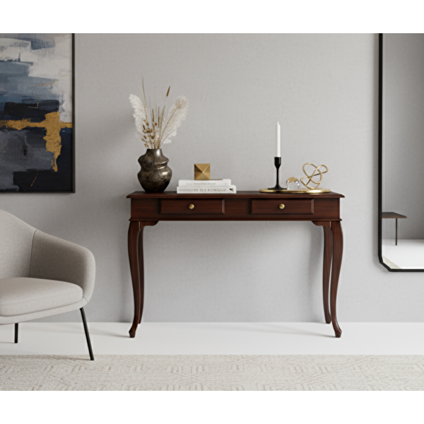 En: 110 Cm, Derinlik: 70 Cm, Yükseklik: 80 Cm’dir. Poliüretan lake boya ve verniklidir. Hem geniş hem de kompakt alanlara rahatça yerleştirilebilir. Ürünün ayakları tamamen ağaç olup, üst tablası mdf üzeri masif(ağaç) kaplamadır. Evinizde ya da ofisinizde şık bir görünüm sağlar. Masif yapısıyla dayanıklılığı artırılmış bu ürün, 1. Sınıf malzemelerden üretilerek uzun süreli kullanım için idealdir. Çekmeceleri sayesinde ekstra depolama alanı sunarak düzenli bir ortam yaratmanıza yardımcı olur. Klasik tasarımı ile her türlü dekorasyona kolayca adapte olur ve zamansız bir stil sunar.