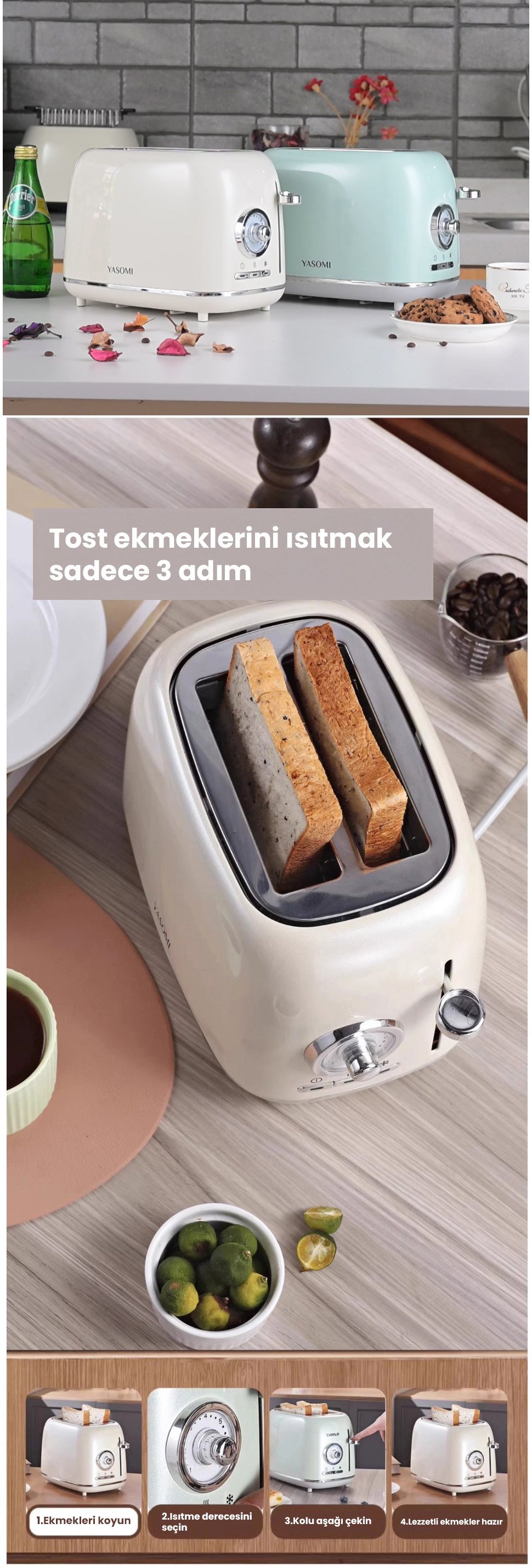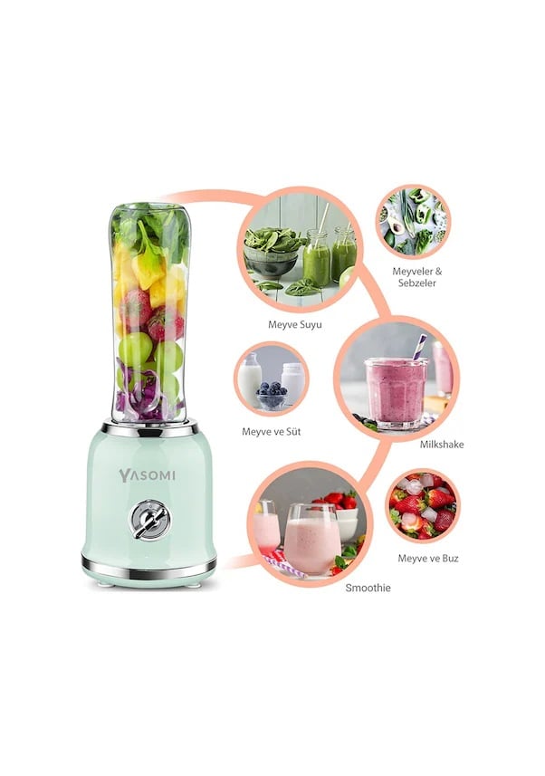 Yasomi Retro Kahvaltı Seti Su Isıtıcı Kettle + Smoothie Blender + Ekmek Kızartma Makinesi (yeşil)