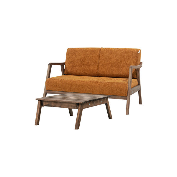 Zem Favela Bohem Çay Seti Ceviz Ahşap, Hardal (1 Adet İki̇li̇ Berjer 1 Adet Sehpa) Hardal