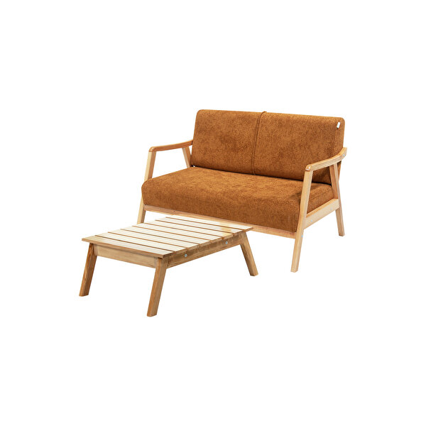 Zem Favela Bohem Çay Seti Natürel Ahşap, Hardal (1 Adet İki̇li̇ Berjer 1 Adet Sehpa) Hardal