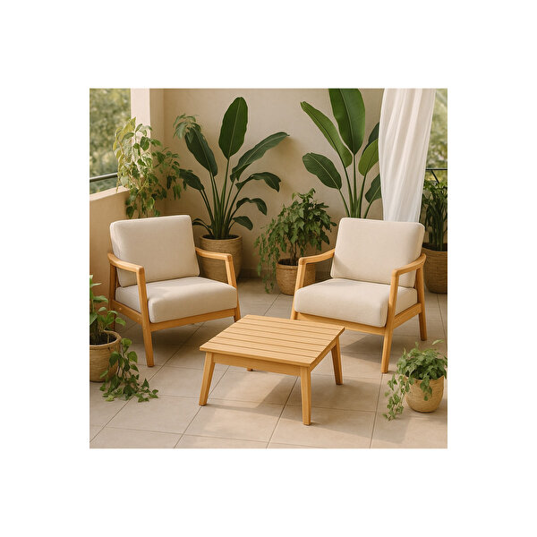 Zem Favela Bohem Çay Seti Natürel Ahşap, Sütlü Kahve (2 Adet Tekli̇ Berjer 1 Adet Sehpa) Sütlü Kahve