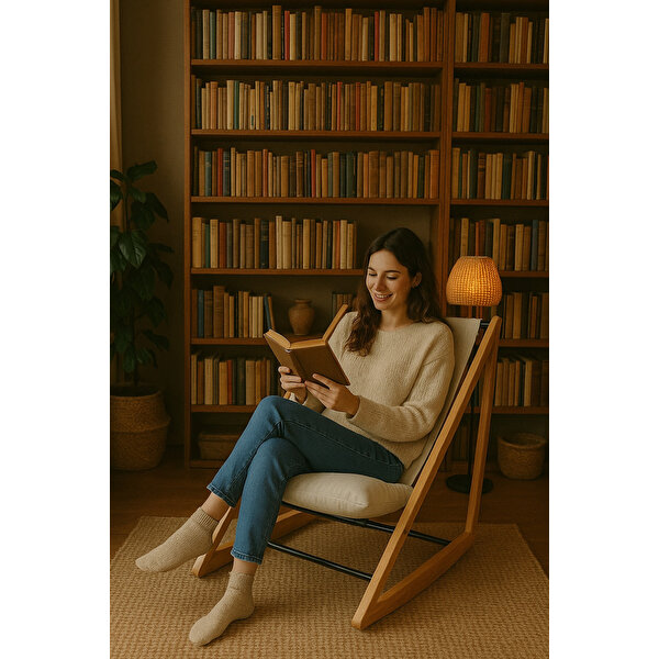 Zem Lupa Bohem Ahşap Berjer , Açık Krem