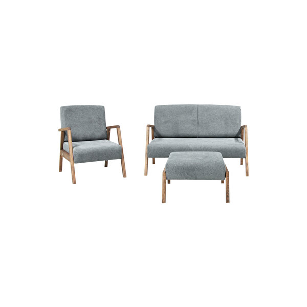 Zem Pavia Çay Seti Ceviz Ahşap, Gri(1adet Iki̇li̇ Berjer 1adet Tekli̇ Berjer 1adet Puf) Gri