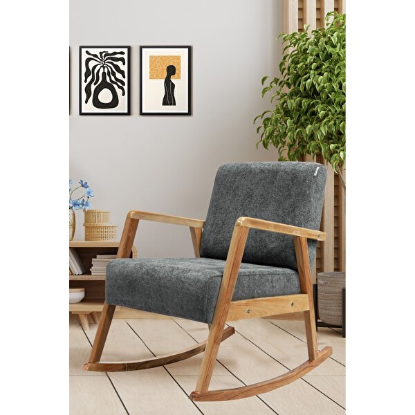 Zem Pavia Sallanır Berjer Natürel Ahşap, Gri