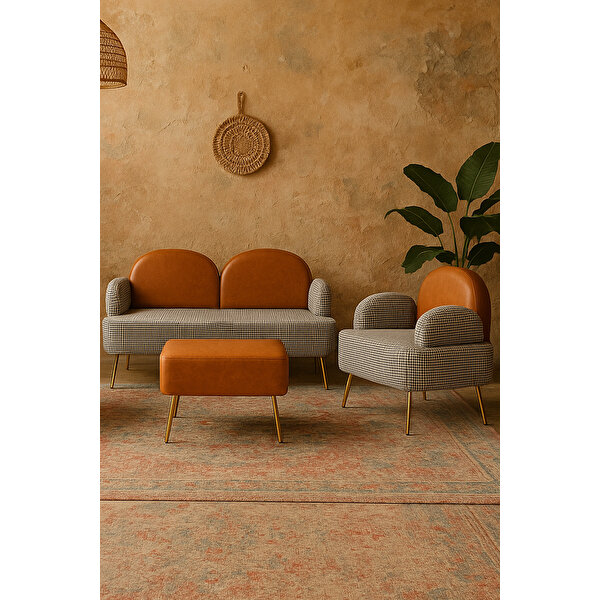 - Şık ve modern tasarımıyla dikkat çeken Petra Çay Seti, siyah kazayağı desenli deri detaylarıyla estetik bir görünüm sunar.; - Tekli berjer ve ikili berjer olmak üzere toplam üç parça içeren bu set, konforlu oturma deneyimi sağlar.; - Puf ile tamamlanan bu çay seti, hem fonksiyonel hem de şık bir oturma alanı oluştururken aynı zamanda misafirlerinizi ağırlarken rahatlık sunar.; - Çok renkli web rengi seçenekleriyle her türlü dekorasyona uyum sağlayan Petra Çay Seti, evinizin atmosferini zenginleştirir.