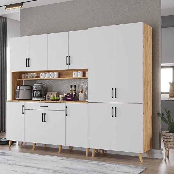 ZerkaConcept Gale Kahve Köşesi Çok Amaçlı Dolap Kiler Mutfak Dolabı Çam Beyaz 240cm - Montaj Dahil