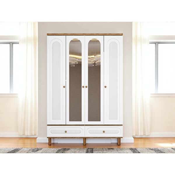 ZerkaConcept Hazan 4 Kapaklı Çekmeceli Mdf Membran Dolap Gardırop Beyaz Montaj Dahil