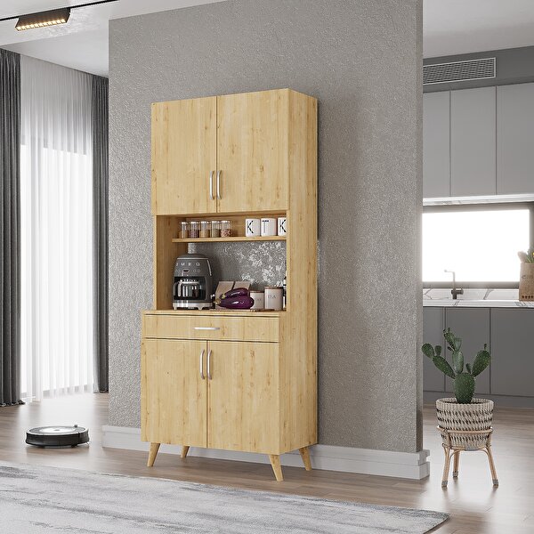 ZerkaConcept Loysen Kahve Köşesi Çok Amaçlı Dolap Kiler Mutfak Dolabı Meşe - Montaj Dahil