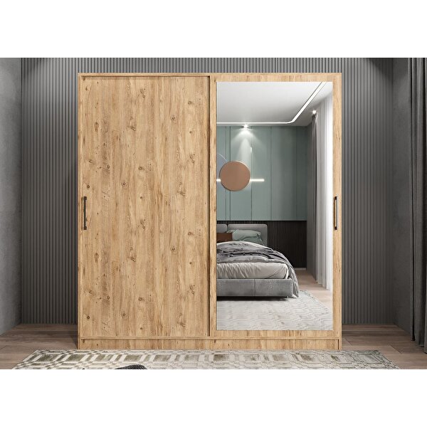 ZerkaConcept Star Sürgü Kapaklı Gizli Çekmeceli Dolap Gardırop Çam 180 Cm - Ücretsiz Kurulum