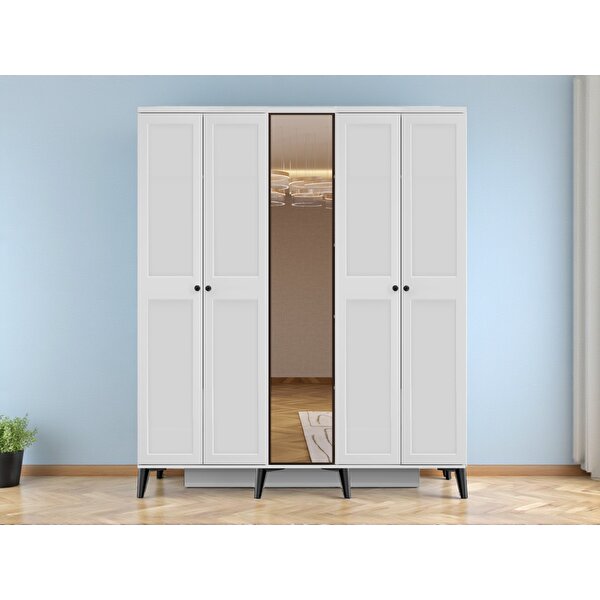 ZerkaConcept Tomris 5 Kapaklı Çekmeceli Mdf Membran Dolap Gardırop Beyaz Montaj Dahil